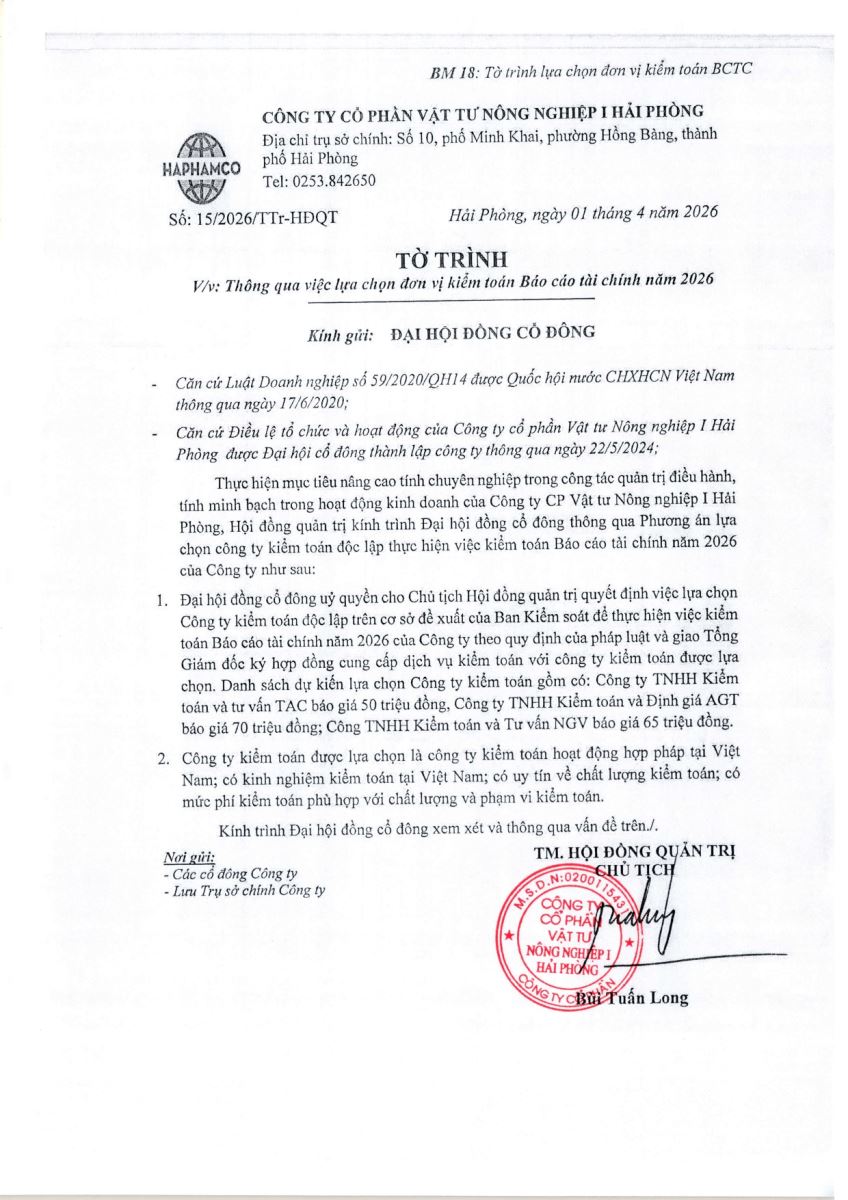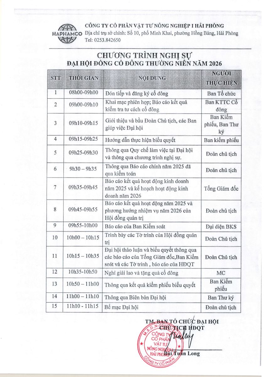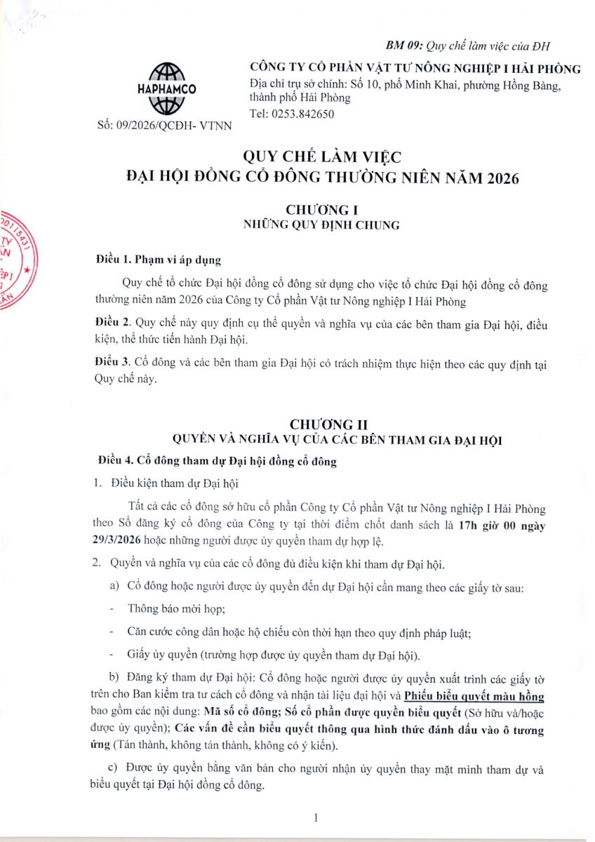 Hồ sơ Đại hội đồng cổ đông thường niên năm 2026