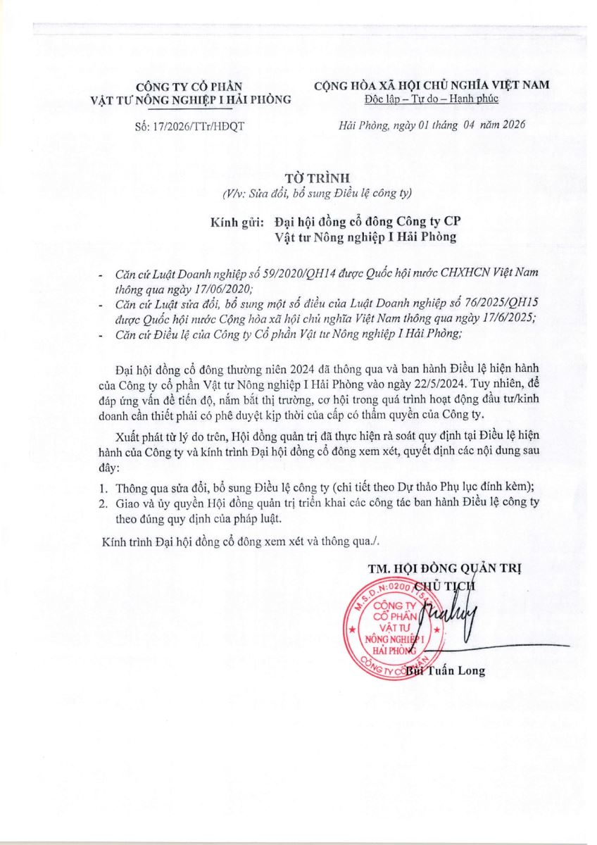 Chào mừng bạn đến CÔNG TY CỔ PHẦN VẬT TƯ NÔNG NGHIỆP I HẢI PHÒNG