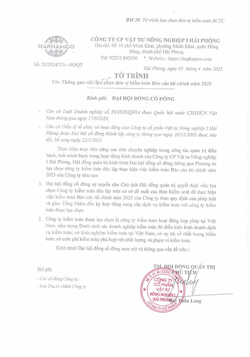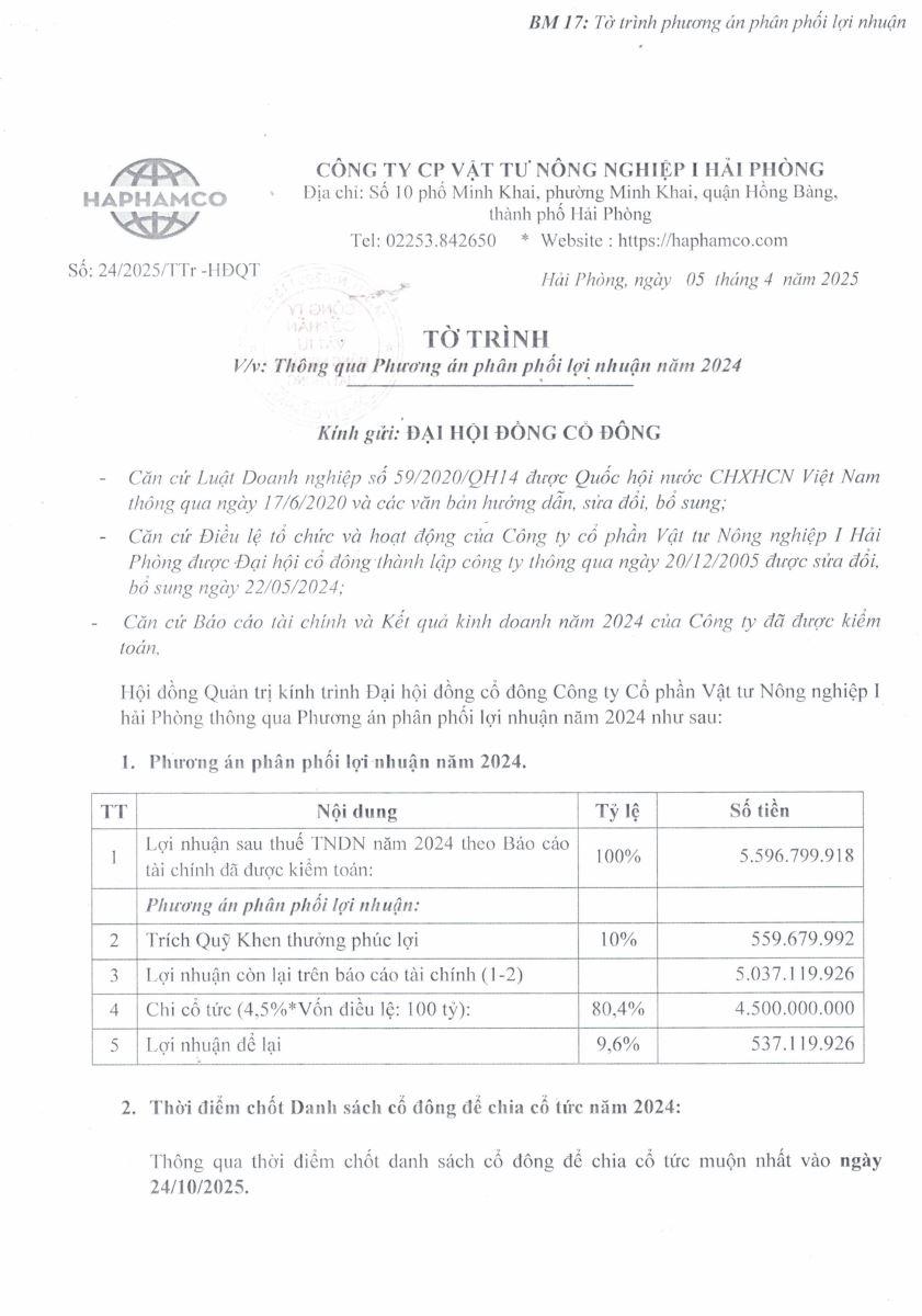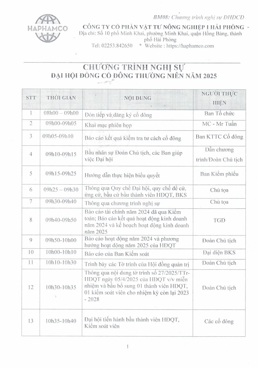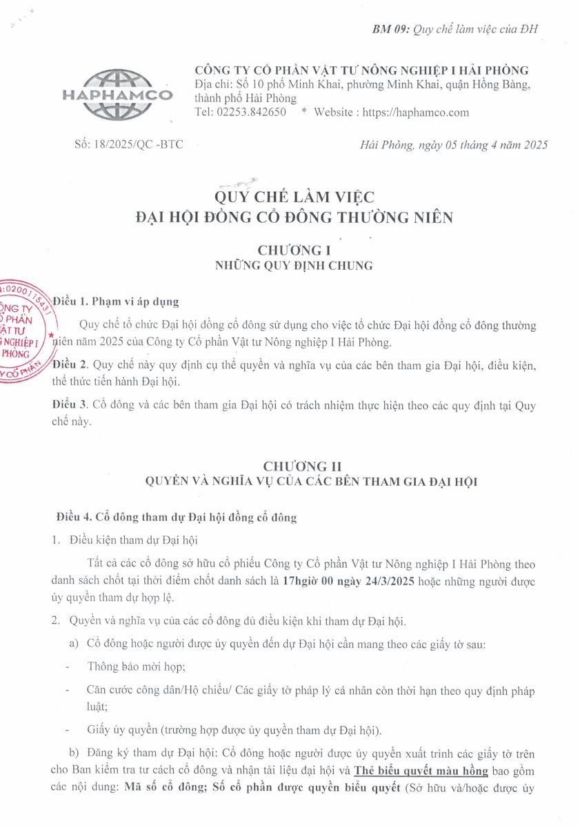 Hồ sơ Đại hội cổ đông thường niên năm 2025